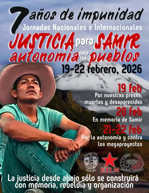 Kompletter Aufruf auf spanisch: https://enlacezapatista.ezln.org.mx/2026/01/19/convocatoria-a-las-jornadas-nacionales-e-internacionales-justicia-para-samir-y-autodeterminacion-para-los-pueblos-del-19-al-22-de-febrero-de-2026/